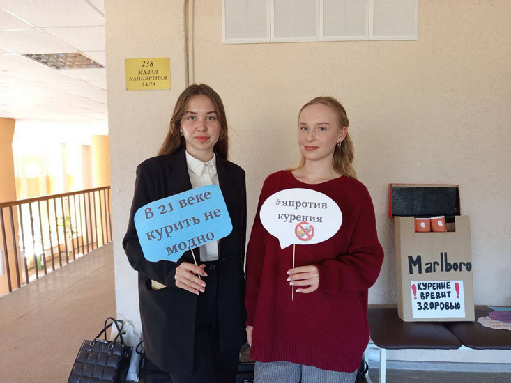 22 сентября актив факультета провел общественную акцию, «МЫ — ПРОТИВ КУРЕНИЯ». Была организована яркая и тематическая фотозона, где студенты смогли не только сделать креативные фотографии, но и выразить свою позицию, выражающую неприятие курения. Каждому студенту были вручены информационные буклеты, подготовленные специально для этой акции, содержащие информацию о последствиях курения.