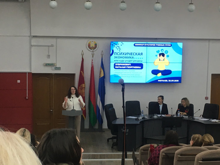 30 сентября 2025 года кураторы учебных групп факультета начального и музыкального образования приняли участие в обучающем семинаре «Профилактика кризисных состояний. Психическая экономика … или куда уходят ресурсы», организованном отделом по идеологической и воспитательной работе. На семинаре рассматривались вопросы профилактики кризисных состояний, достижения баланса между эффективной работой и эмоциональной устойчивостью, тайм-менеджмента.