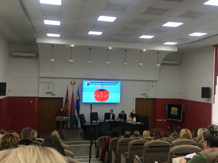 Методист отдела по идеологической и воспитательной работе Т.А. Миссюревич дала практические советы по эффективному планированию времени инструментами тайм-менеджмента.