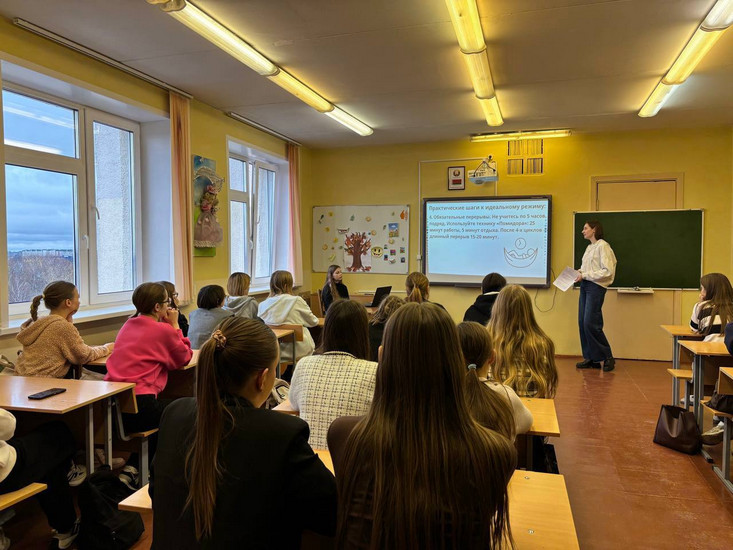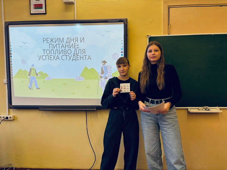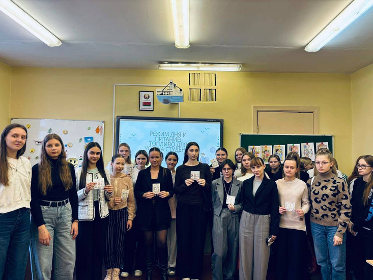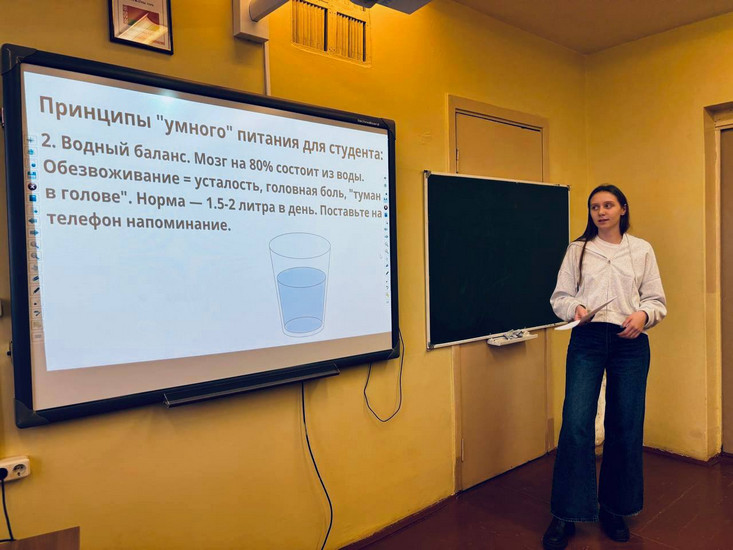 Важным мероприятием в рамках недели стала беседа «Режим дня и питание: топливо для успеха студента», подготовленное Щербаковой Ангелиной (4 курс) и Хуртовой Кариной (2 курс). Эта тема особенно актуальна для студентов 1 курса, которые пребывают в процессе адаптации к новому ритму и образу жизни. Программа встречи включала в себя интерактивные формы: викторины и практические задания. По окончанию мероприятия каждый первокурсник получил на память тематическую памятку.