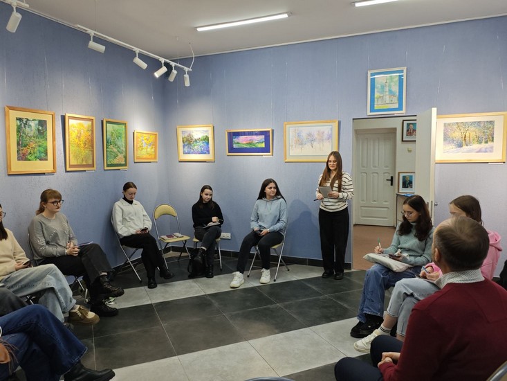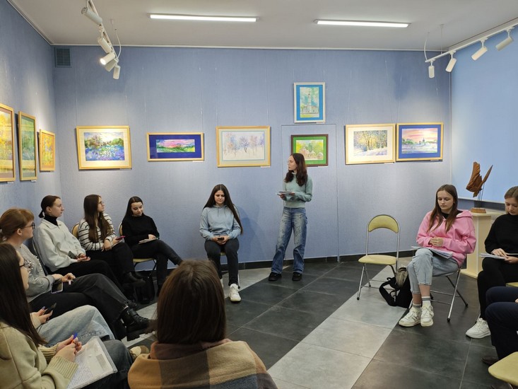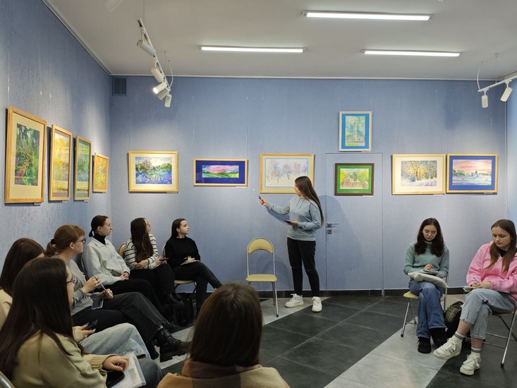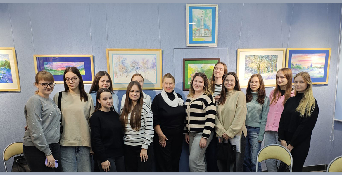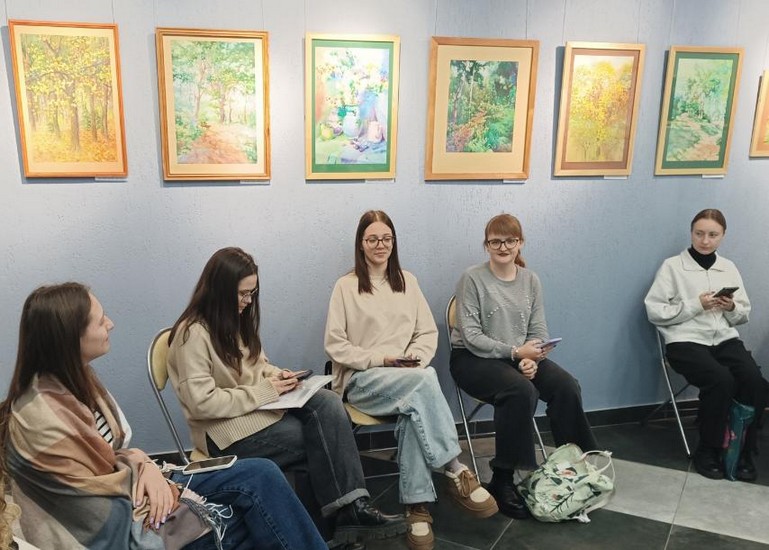 Студэнты 4-га курса спецыяльнасці «Пачатковая адукацыя» наведалі выставу магілёўскага творцы Сяргея Калядзюка ў выставачнай зале ўніверсітэта. «Дыялог з пейзажам» — так называецца выстава — стаў нагодай для гутаркі пра мастацтва і яго ролю ў нашым жыцці. Педагог дадатковай адукацыі аддзела па ІіВР Л. В. Набокава пазнаёміла з асобай мастака, а студэнты падрыхтавалі выказванні пра тое, што яны ўбачылі, адчулі і зразумелі ў яго творах.