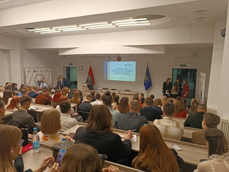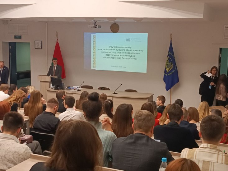 28 ноября 2025 года студентка 2 курса факультета начального и музыкального образования МГУ имени А. А. Кулешова Горбачева Ангелина в составе делегации университета приняла участие в обучающем семинаре для учреждений высшего образования по вопросам подготовки и проведения республиканского проекта «Всебелорусская Лига дебатов» в Академии управления при Президенте Республики Беларусь.