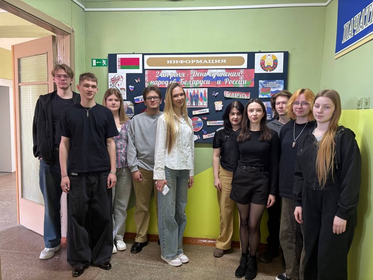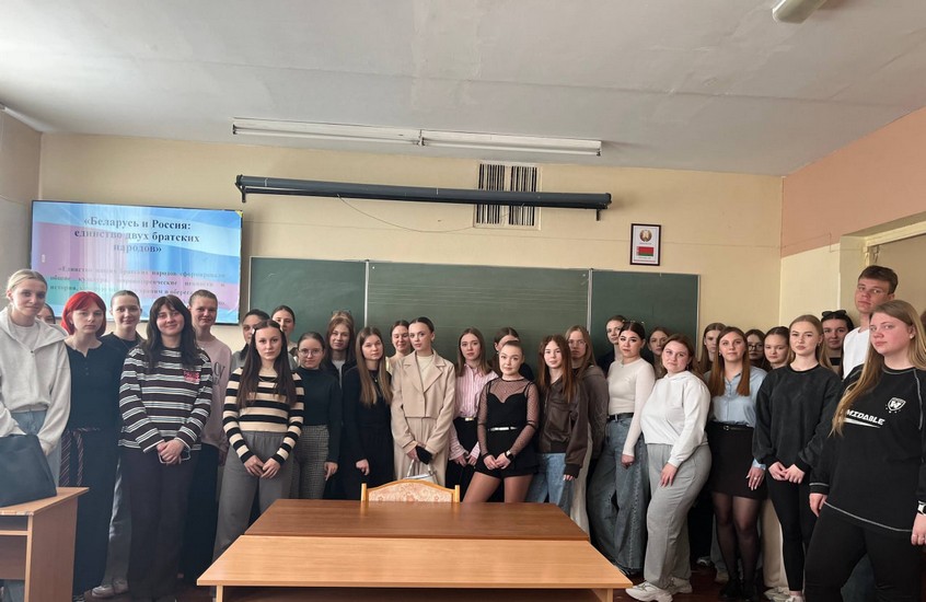 Студенты вместе с заместителем декана Ю. В. Аленьковой присутствовали на тематическом мероприятии «День единения народов Беларуси и России» в кинотеатре «Чырвоная Зорка», где перед собравшимися выступила Е. С. Опидович, председатель Могилевского городского отделения Республиканского общественного объединения «Русское общество».